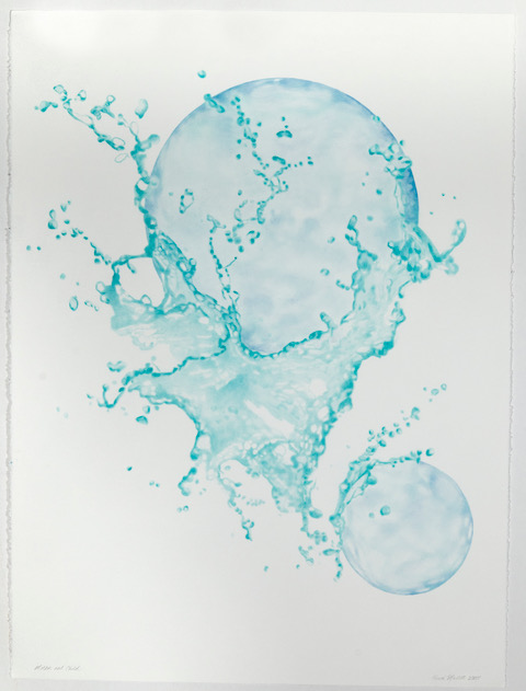 Mother and Child captures a fleeting moment where water’s weight and air’s lightness coexist in delicate balance. Two large, translucent bubbles appear intimately connected, surrounded by dynamic splashes and scattered droplets that convey continuous movement. The composition’s clean white background emphasizes the fluid shapes and subtle shifts of blue, drawing attention to the natural tension between solidity and suspension. This piece invites reflection on connection and vulnerability, using water’s unpredictable motion to explore the fragile bonds that hold relationships together. The meticulous rendering of texture and transparency reveals a quiet energy, making the invisible visible through precise detail and thoughtful composition.