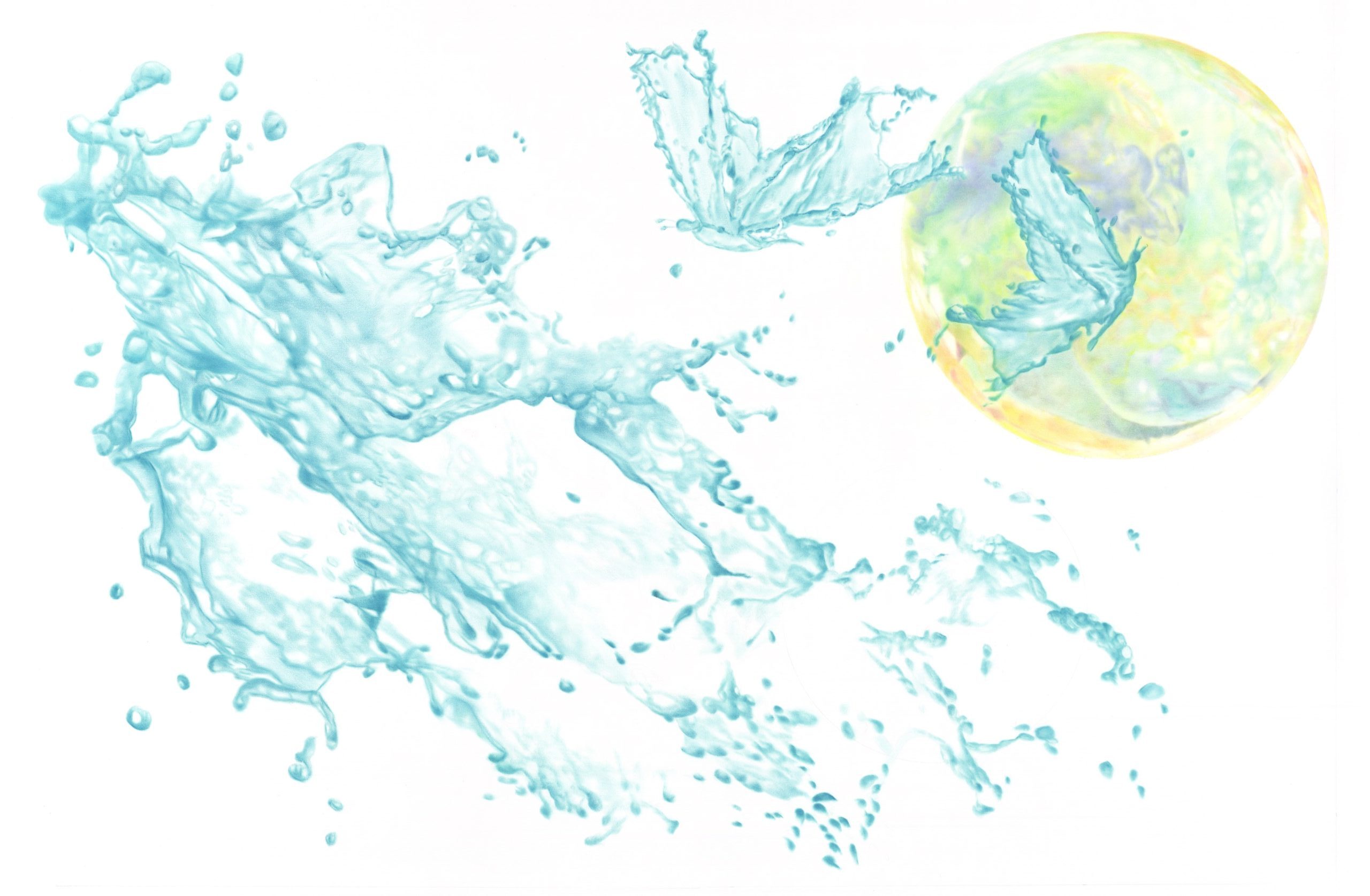 The work invites quiet contemplation on the rhythms of nature and the ephemeral moments when transformation unfolds. The layered forms—water splashes that reveal hidden profiles and delicate creatures—speak to an intimate merging of the natural world with poetic abstraction, capturing the serene mindscape inspired by landscapes along the shore. Here, water becomes more than a substance; it is a vessel of peace, renewal, and the gentle passage of time, reflecting the quiet strength found in moments of stillness and emergence.
